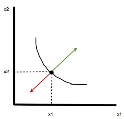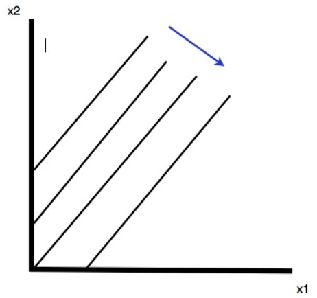 Exercise: If there are only two goods and if more of x1 is always preferred to less while less of x2 is always preferred to more, then what will the indifference curves for this consumer look like?
