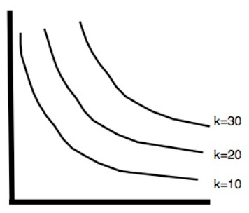 Changing the fixed level gets different indifference curvesTo draw these resulting indifference curves we need to draw level sets of the function, that is, the set of all (x1,x2) such that u(x1, x2) is a constant.